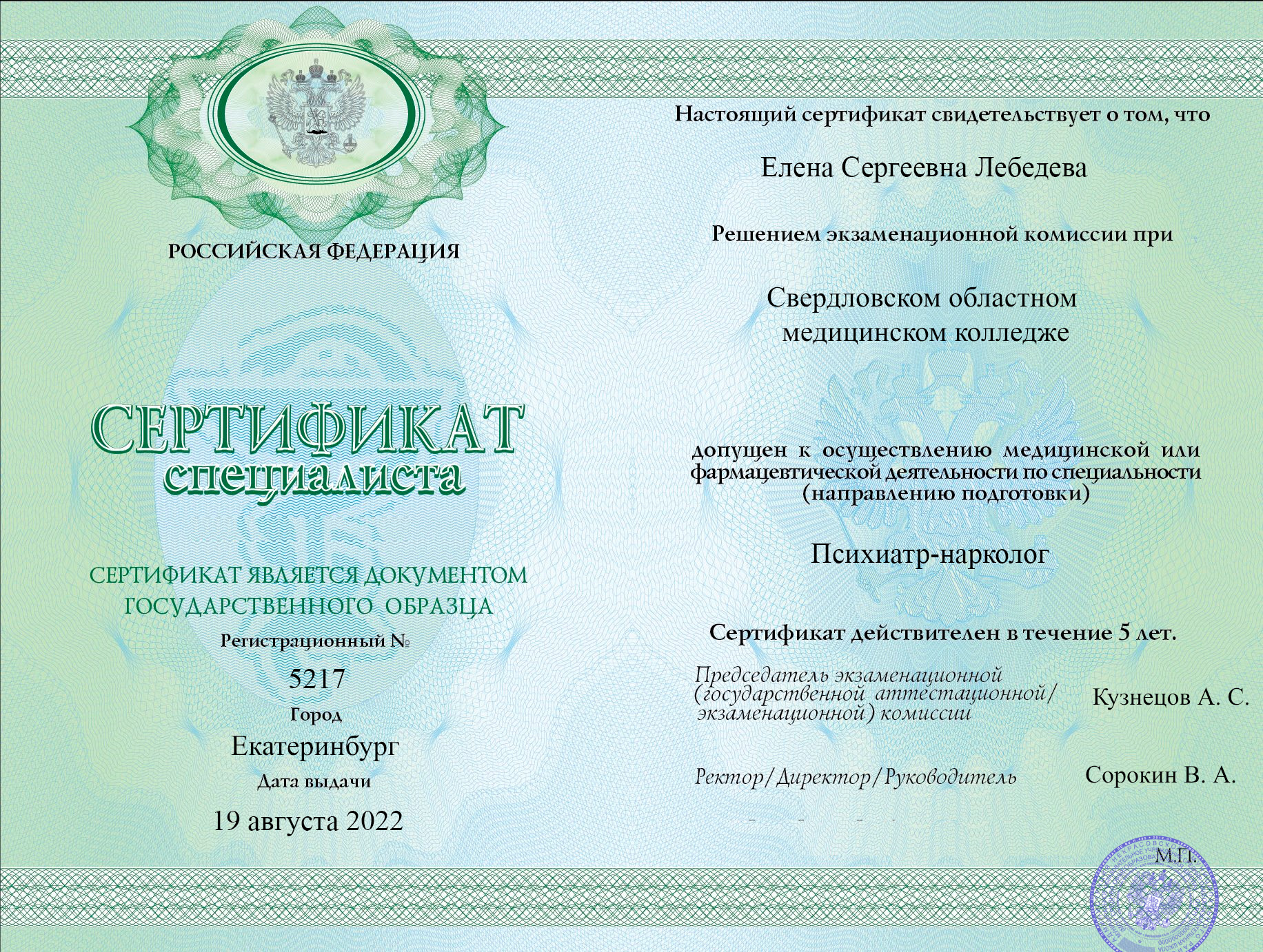 Елена Сергеевна Лебедева врач нарколог клиники доктора Стукаловой в Дзержинском